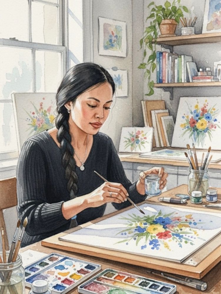 I’ve always been drawn to the softness of watercolor — the way it flows, blooms, and blends so effortlessly, just like emotions. And I’ve always loved ballet — its grace, discipline, and quiet strength. When I combined these two worlds, the vision became clear: